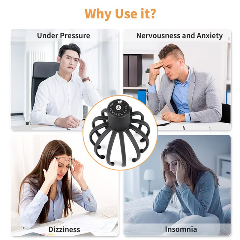 🪄 Durchdachtes ergonomisches Design: Die flexiblen, elastischen Zinken passen sich Ihrer Kopfform an und sorgen für eine wohltuende Massage, die den ganzen Körper entspannt - perfekt, um nach der Arbeit zu entspannen oder den Morgen zu beginnen.