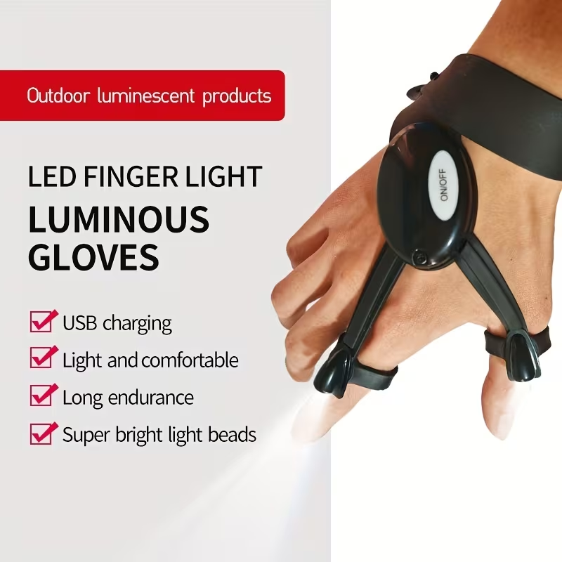 LED-Illuminated Gloves: A Practical and Safety-Enhancing Solution for Low-Light Activities Such as Night Fishing and Jogging. Features include glare-free, soft ambient illumination; lightweight ergonomic design; and universal usability across diverse user groups.